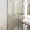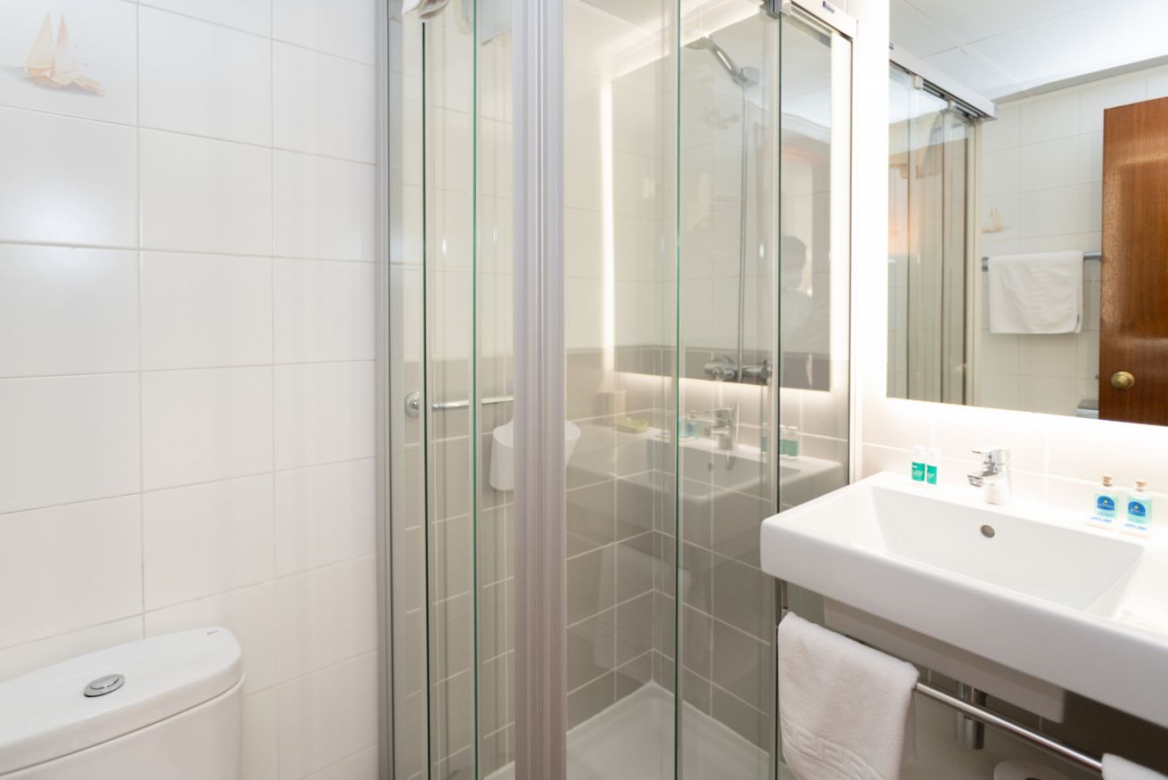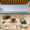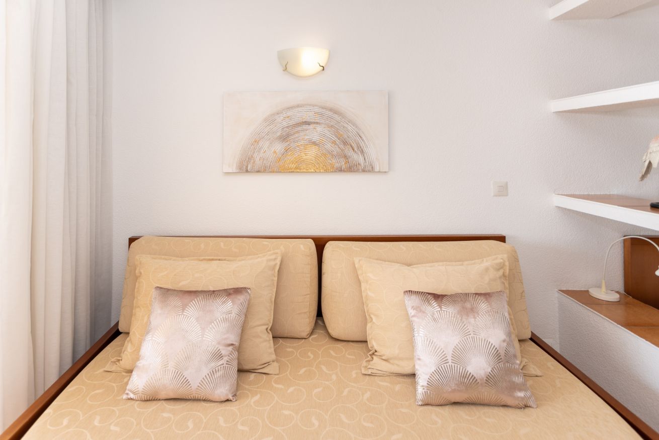 Estudio 3 personas, 2 camas individuales y un sofa cama para 1 persona, una cocina americana, una ducha y una terraza con vistas al mar